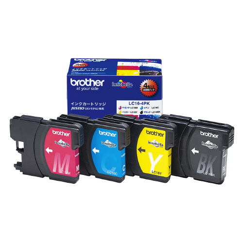 ●ブラック(型番:LC16BK)・シアン(型番:LC16C)・マゼンタ(型番:LC16M)・イエロー(型番:LC16Y)の4色パック