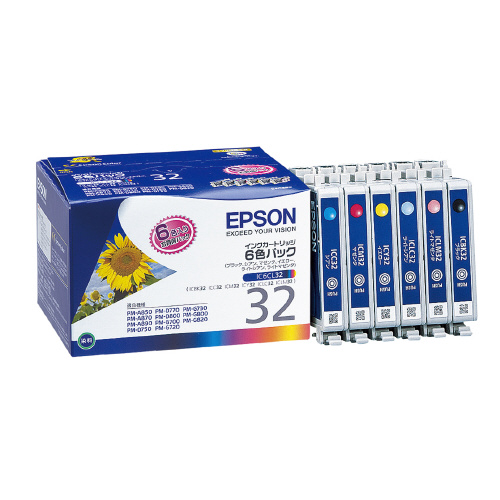 ●ブラック(型番:ICBK32)・シアン(型番:ICC32)・マゼンタ(型番:ICM32)・イエロー(型番:ICY32)・ライトシアン(型番:ICLC32)・ライトマゼンタ(型番:ICLM32)の6色パック