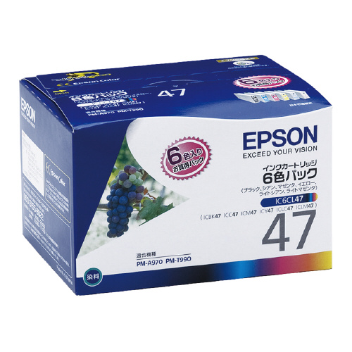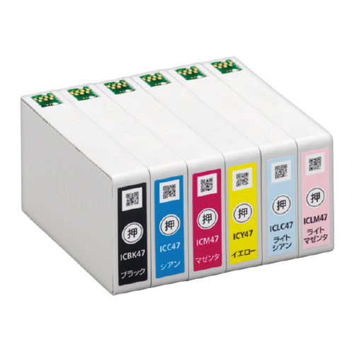 ●ブラック(型番:ICBK47)・シアン(型番:ICC47)・ライトシアン(型番:ICLC47)・マゼンタ(型番:ICM47)・ライトマゼンタ(型番:ICLM47)・イエロー(型番:ICY47)の6色パック