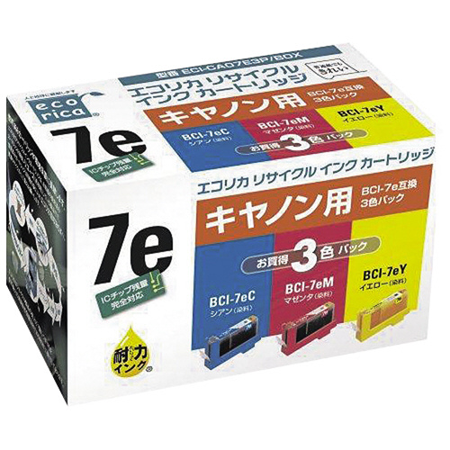 リサイクルインク キヤノン対応 BCI-7eC/M/Y 3色パック ECI-CA07E3P/BOX