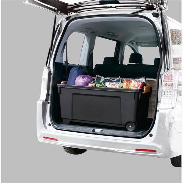 商品の説明サイズ:幅100㎝?|?色:ブラック車の荷台で散らかりがちなレジャー用品等の収納に最適なRV BOX。フタを閉めれば、踏み台やイスとしても使える。移動に便利なキャスター付き(※キャスターにストッパーは付いておりません)。持ち手の両側2ヶ所には市販の南京状(30mm)が取付可能。