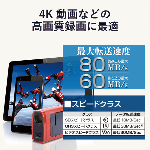 ■最低保証速度:30MB/s(※UHS-I対応機器使用時)