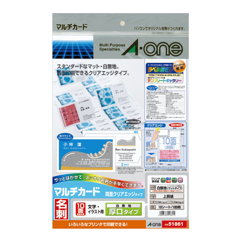 マルチカード<名刺>プリンタ兼用 両面クリアエッジ 厚口 10面10枚/袋
