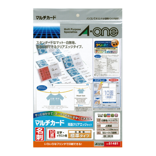 マルチカード<名刺>プリンタ兼用 両面クリアエッジ 標準 10面10枚/袋
