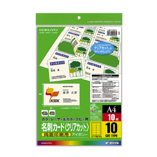 カラーLBP&カラーコピー用名刺カード クリアカット 10面 10枚/袋