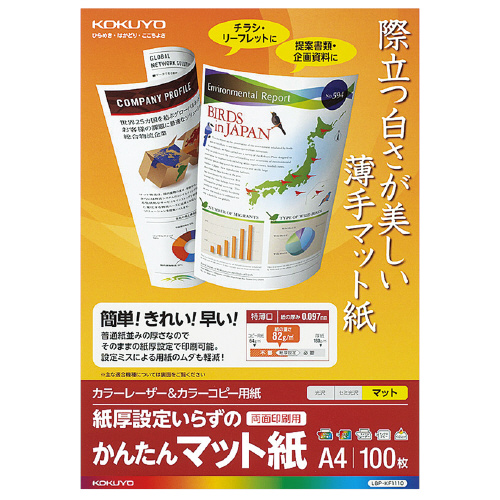 LBP&カラーPPC用かんたんマット紙 特薄口 A4 100枚