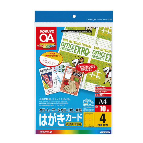 カラーLBP&カラーコピー用はがきCD 両面印刷用 4面 10枚/袋 A4