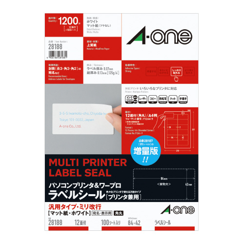 パソコン&ワープロラベルシール [プリンタ兼用]汎用ミリ12面 100枚