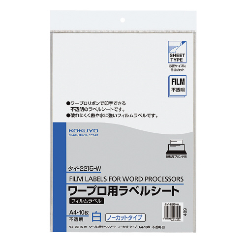 ワープロ用フィルムラベル 不透明・白 A4 10枚
