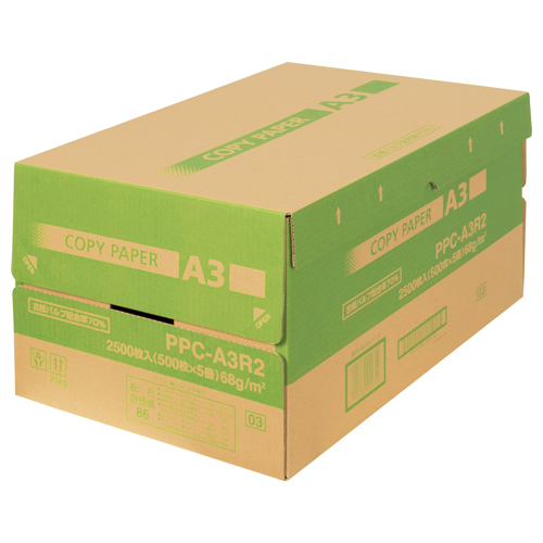 リサイクルコピー用紙 A3 (古紙配合・白色度69%) 500枚/包 PPC-A3R2