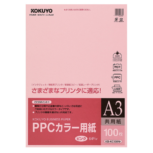 PPCカラー用紙(共用紙) A3 100枚 64g平米 ピンク