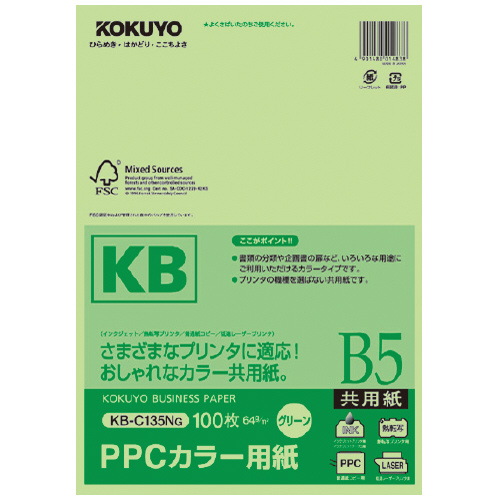 PPCカラー用紙(共用紙) FSC認証 B5 100枚 64g平米 緑