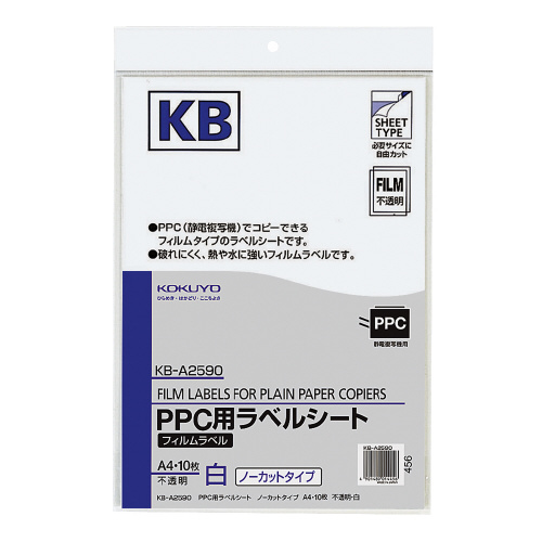 PPC用ラベルシート(フィルムラベル) A4 10枚入 ノーカット 不透明白
