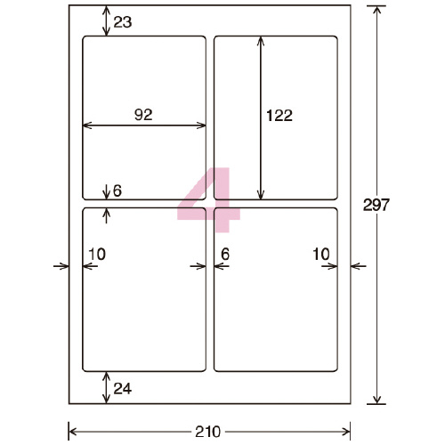 ワープロ用ラベルシート(紙ラベル) A4 5枚入 プレート1/4