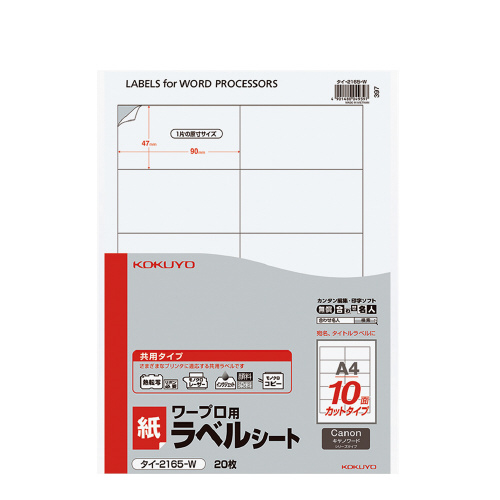 ワープロ用ラベルシート(共用タイプ) A4 20枚入 キヤノン対応