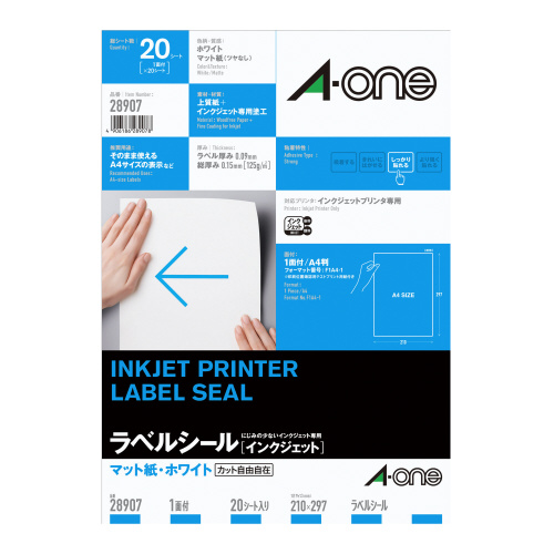 インクジェット用ラベルシール マット紙 ノーカット 20枚