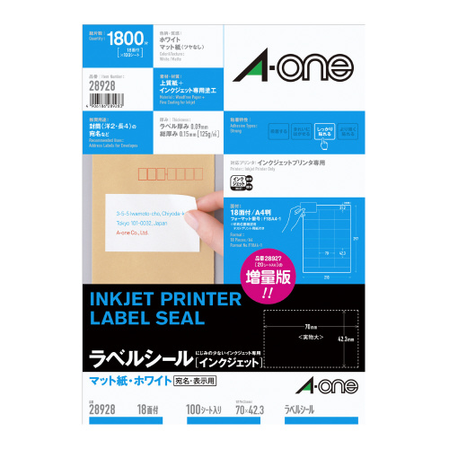 インクジェット用ラベルシール マット紙 18面 上下余白付 100枚
