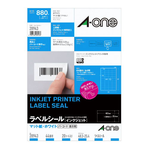 インクジェット用ラベルシール マット紙 44面 四辺余白付 20枚
