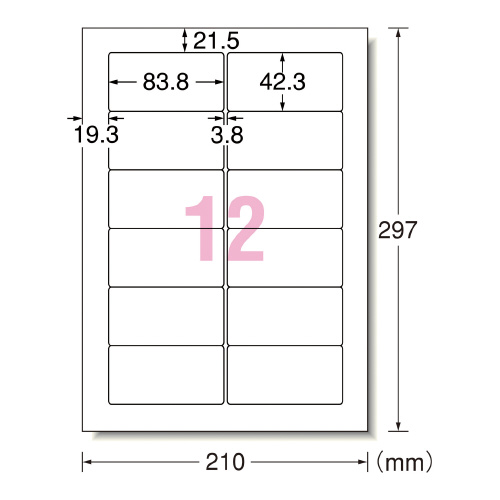インクジェット用ラベルシール マット紙 12面四辺余白付角丸 100枚