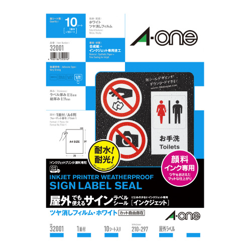 IJPラベル 屋外タイプ A4 10枚 ツヤ消しフィルム・ホワイト