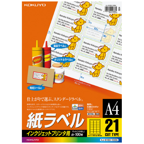 インクジェットプリンタ用紙ラベル A4 100枚入 21面カット