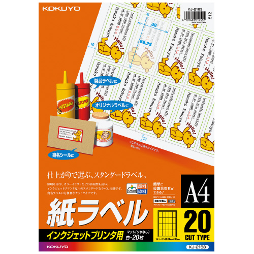 インクジェットプリンタ用紙ラベル A4 20面 20枚