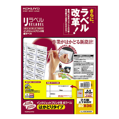IJP用ラベル リラベル A4 100枚入 24面上下余白付