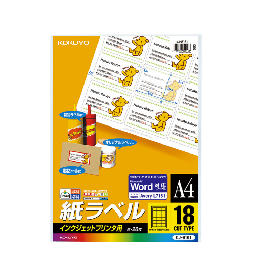 インクジェットプリンタ用紙ラベル 18面 20枚