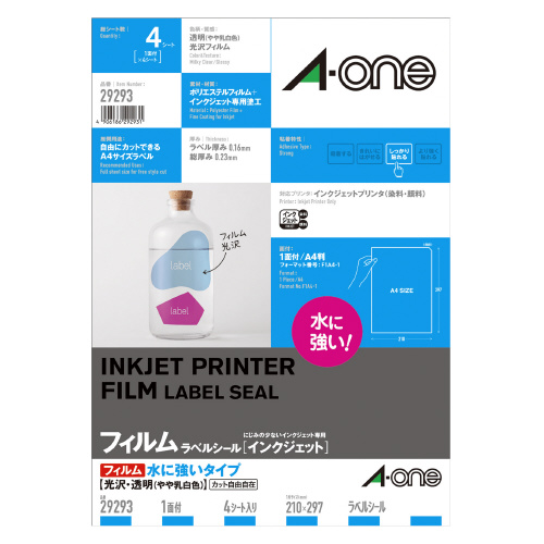 インクジェットプリンタラベル 水に強い光沢フィルム A4サイズ