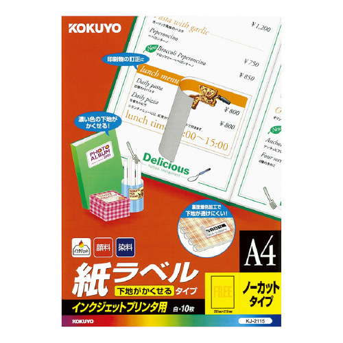 インクジェットプリンタ用紙ラベル 下地がかくせるタイプA4 10枚