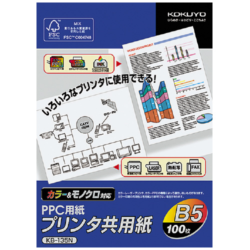 プリンタ共用紙FSC認証 B5 100枚 KB-135N