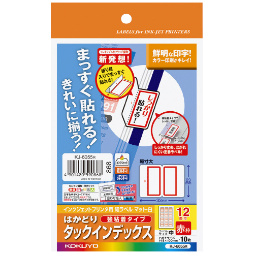 インクジェット用インデックス紙ラベル ハガキサイズ10枚入 12面カット 赤枠