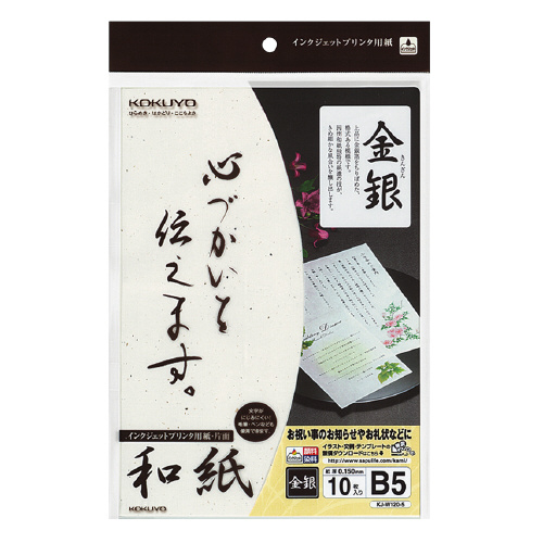 インクジェットプリンタ用紙和紙 B5 10枚 金銀柄