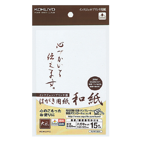 IJP用はがき用紙 和紙 郵便番号枠有り 15枚入