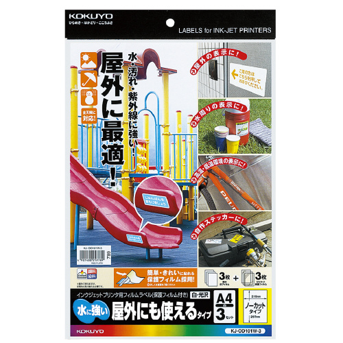 インクジェットプリンタ用フィルムラベル A4 屋外でも使えるタイプ 3枚入