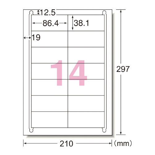 プリンタ兼用ラベルシール マット紙 14面 四辺余白付 100枚