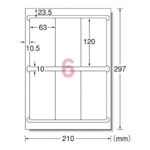 プリンタ兼用ラベルシール マット紙 6面 四辺余白付角丸 100枚