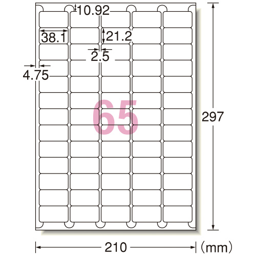プリンタ兼用ラベルシールHGタイプ 65面 20枚