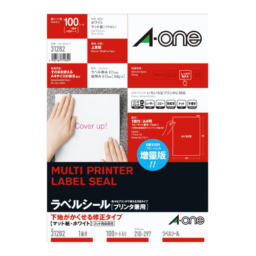 プリンタ兼用ラベルシール 下地がかくせる修正タイプ 1面 100枚