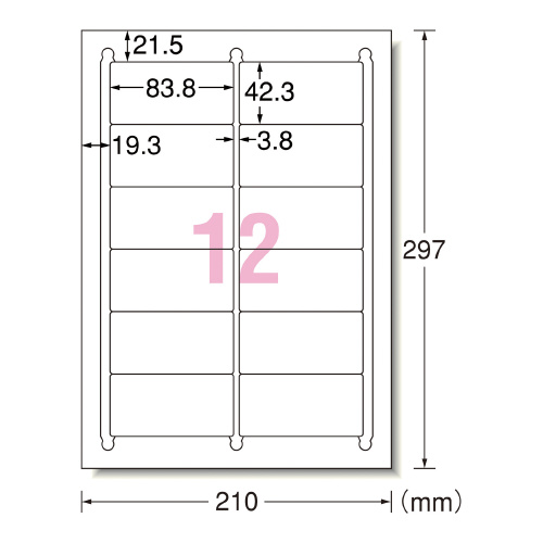 プリンタ兼用ラベルシール マット紙 12面 四辺余白付角丸 22枚