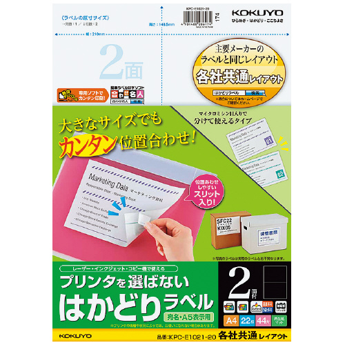 プリンタを選ばない はかどりラベル A4 2面 22枚