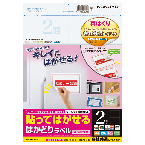 貼ってはがせる はがせるラベル A4 2面 20枚
