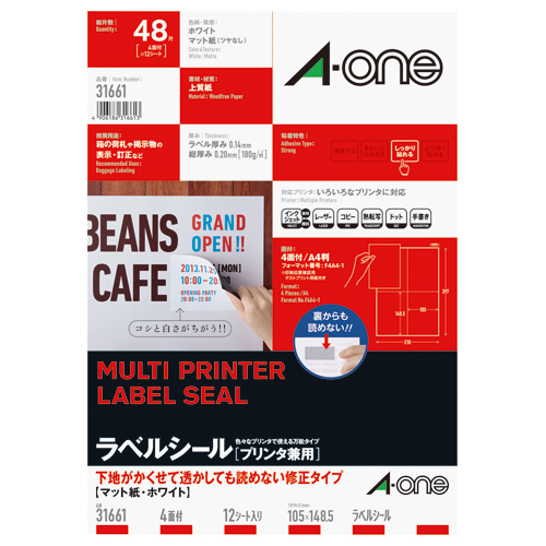プリンタ兼用ラベルシール 透かして読めない修正タイプ 4面12枚