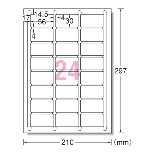 プリンタ兼用ラベルシール マット紙 24面 四辺余白付 100枚 73424
