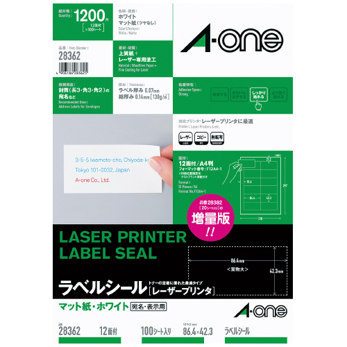 レーザープリンタ用ラベル A4 12面 100シート入