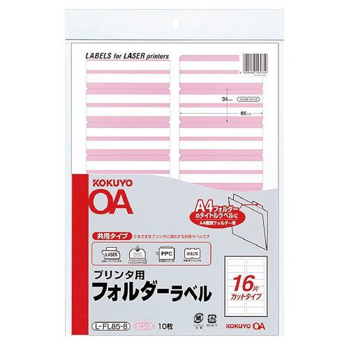 プリンタ用フォルダーラベル A4個別フォルダー用 10枚入 ピンク