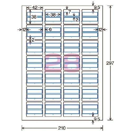 LBP&IJP用タックインデックス 強粘着 A4 28面(特大)20枚 青枠