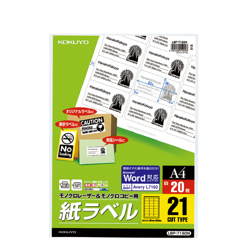 モノクロレーザー用紙ラベル A4 20枚入 21面カット