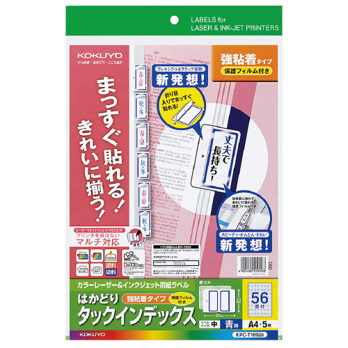LBP&IJP用タックインデックス 保護フィルム付 A4 56面 5枚 青枠