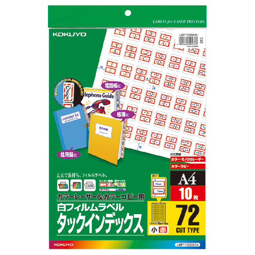 カラーLBP&PPCタックインデックス フィルムラベル A4 72面 10枚 赤